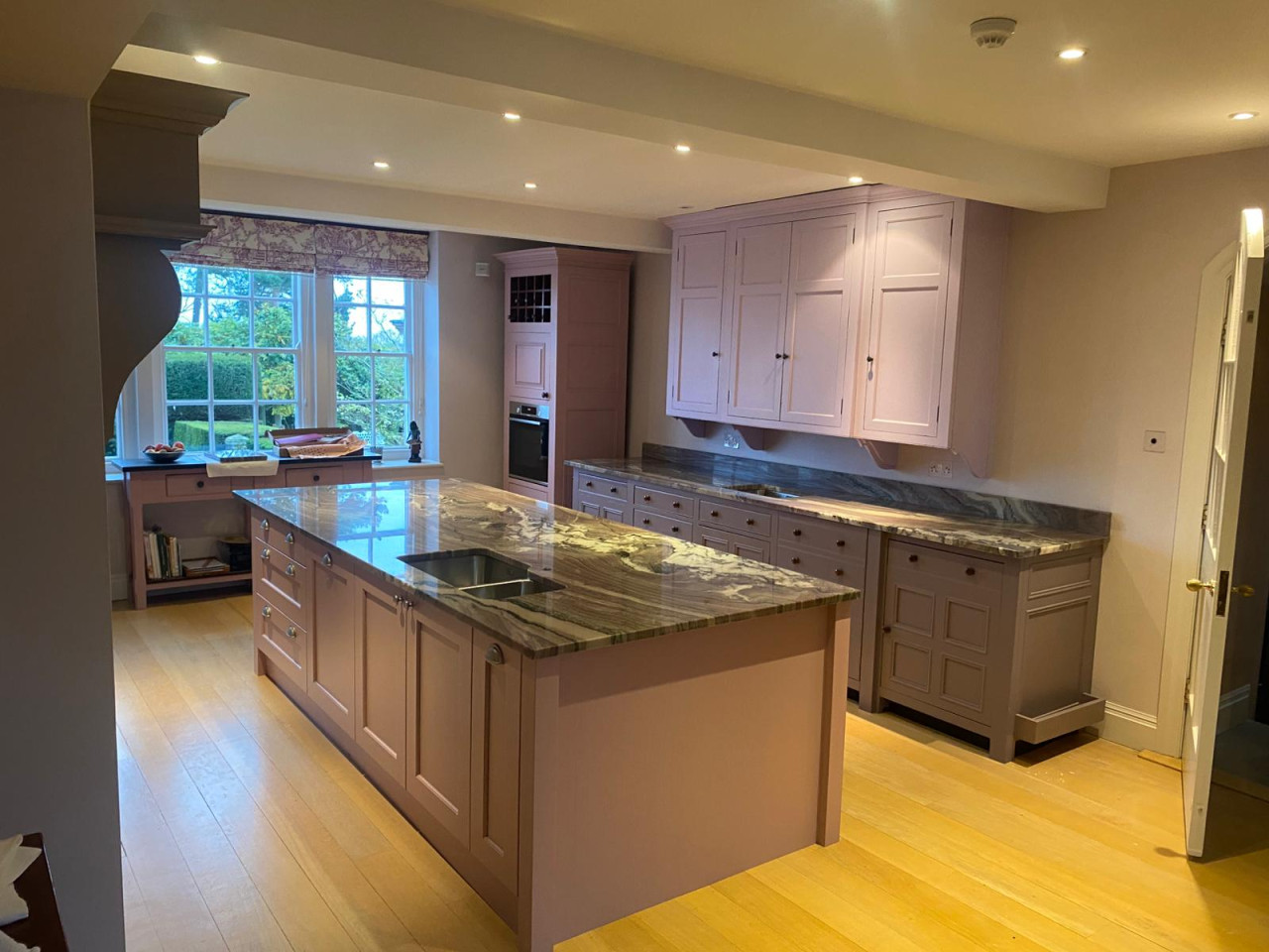 The stunning purple natural quartzite worktop installed in the heart of the kitchen changed the whole ambiance of the room. This majestic centerpiece, with its rich hues ranging from amethyst to lavender, added a splash of vibrant color and instantly became the eye-catching jewel of the space. Its polished surface gleamed under the lights, reflecting the intricate patterns and enthralling depth characteristic of quartzite. Perfectly combining durability with luxury, this stunningly unique worktop served as a testament to refined taste and appreciation for natural beauty, capturing the attention of anyone who entered the room.